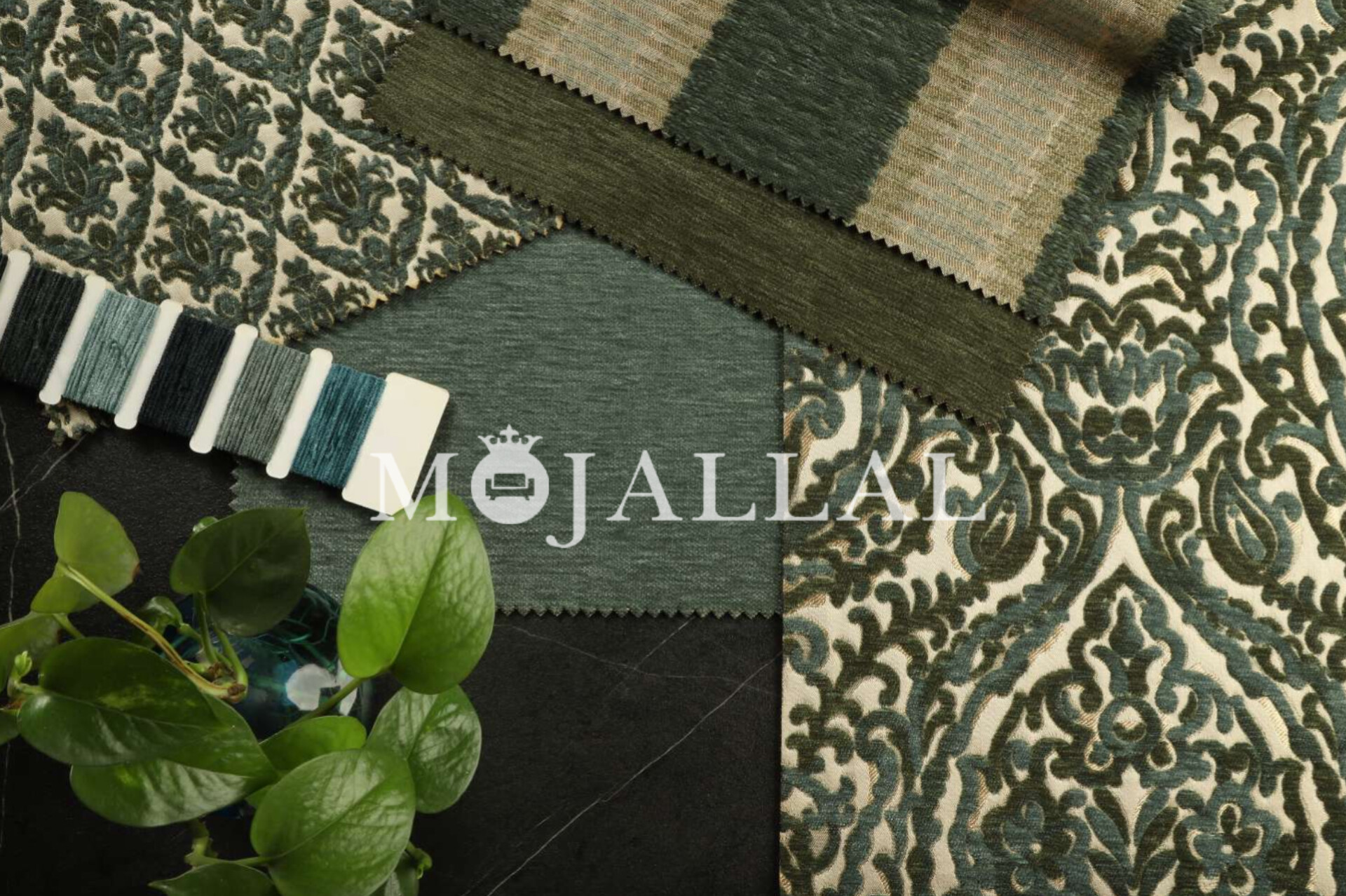 • پارچه مبلی آراد بافته شده با دو نخ شانل در رنگ سبز روشن و سبز تیره