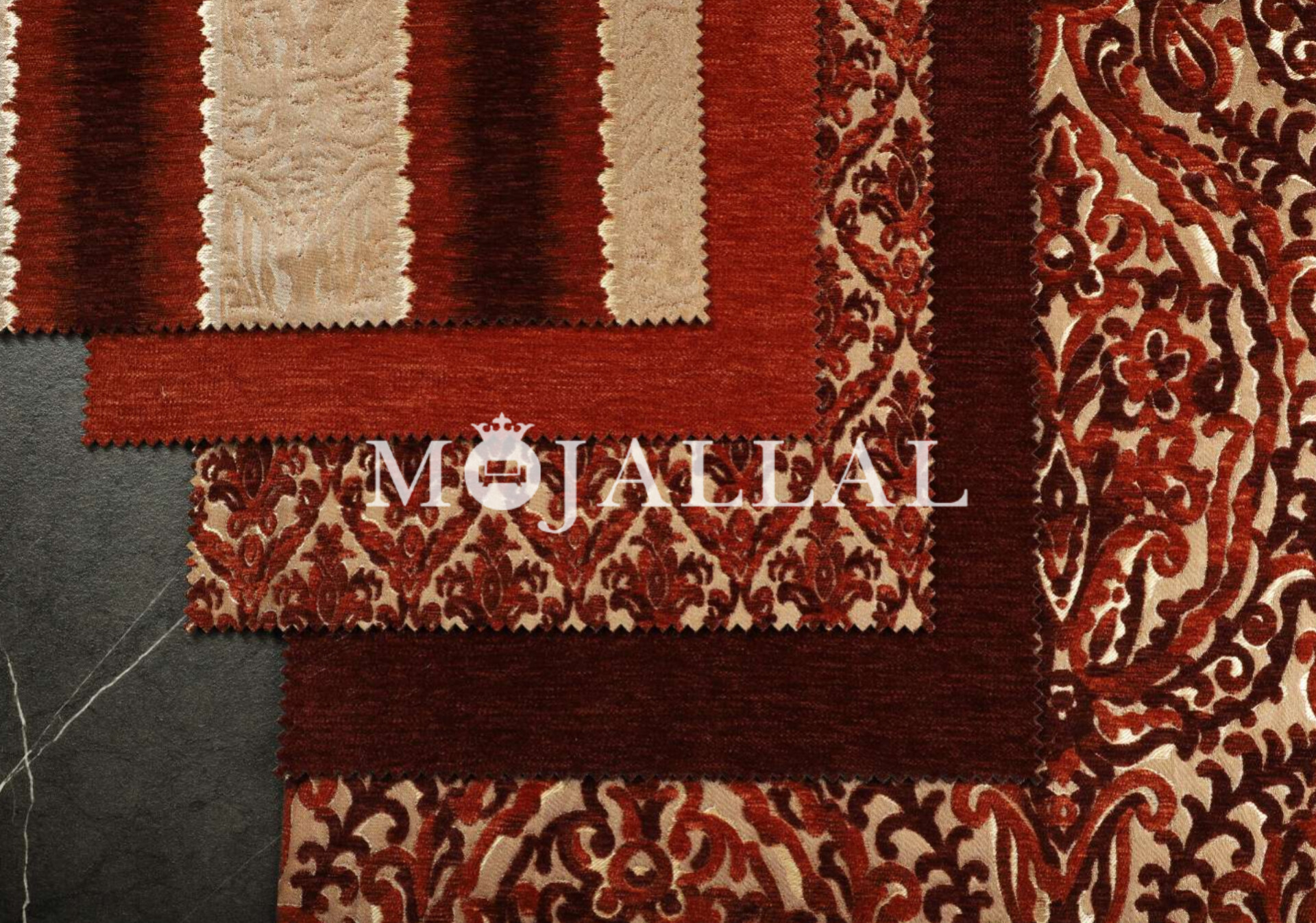 • پارچه مبلی آراد بافته شده با دو نخ شانل رنگ زرشکی و سماقی